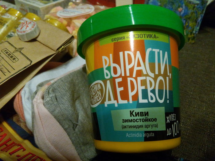 Не просто киви, а дерево для выращивания "Киви зимостойкое". Мандарин на окне радостно машет листьями в ожидании нового зелёного соседа)
