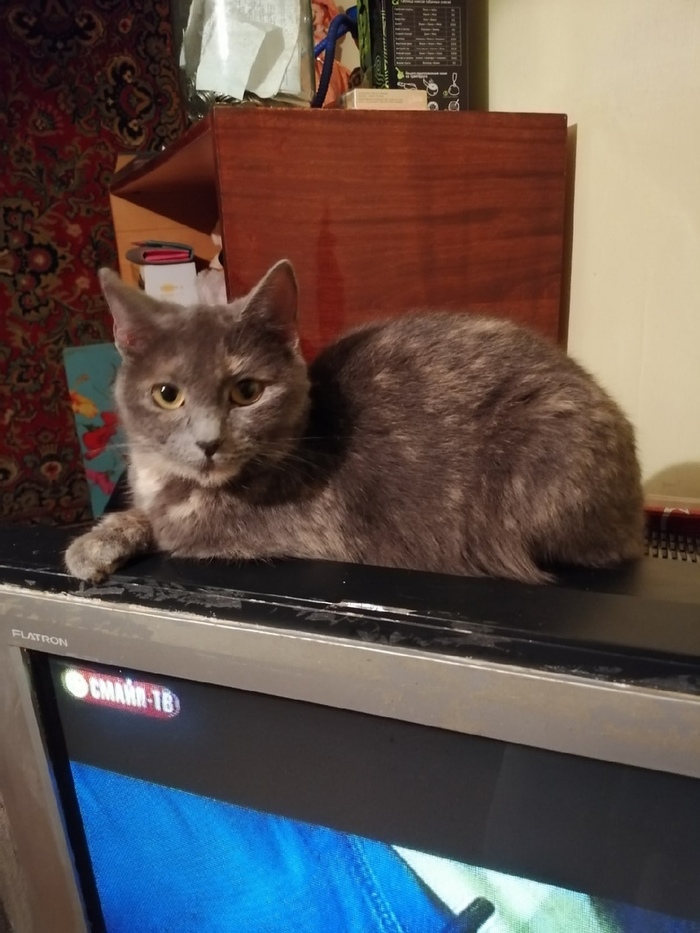 Володька живет у меня уже больше года, по-прежнему прекрасный утеплитель для окон)Остальных животных так же терпит, поэтому надеюсь что смогу найти ей дом, где она будет единственным и самым любимым питомцем.
