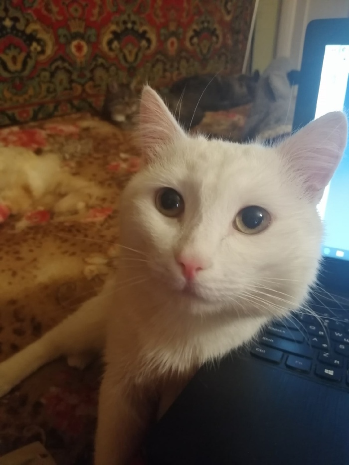Лоток знает, не промахивается,стерильна.У Лапы есть изюминка-она у нас косоглазик,на фото к сожалению не видно всего очарования ее мордахи,не любит девочка позировать))