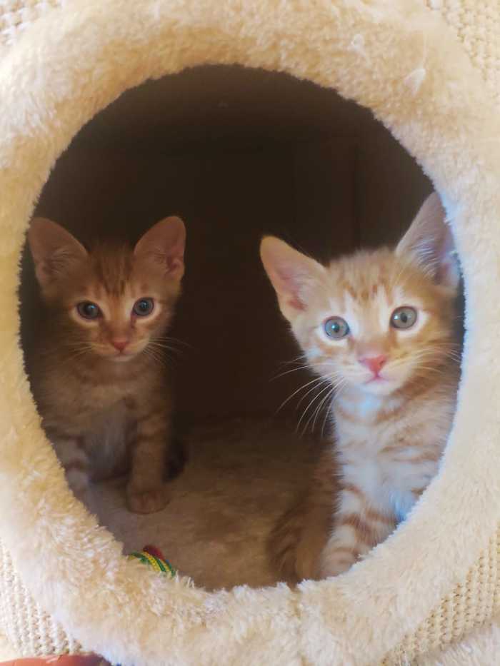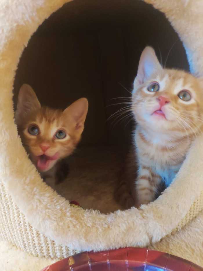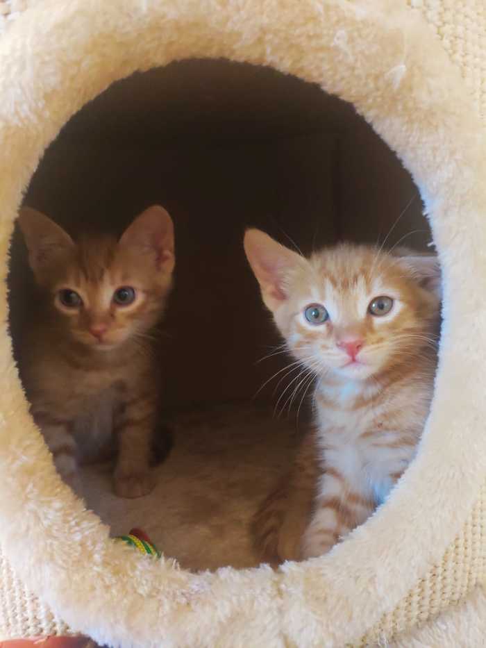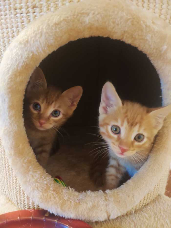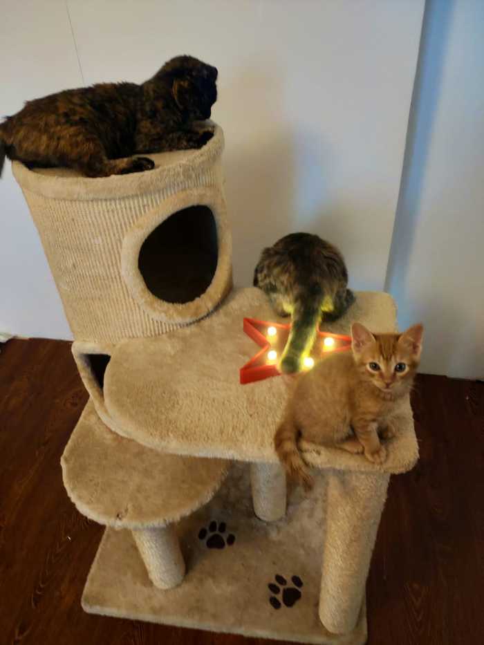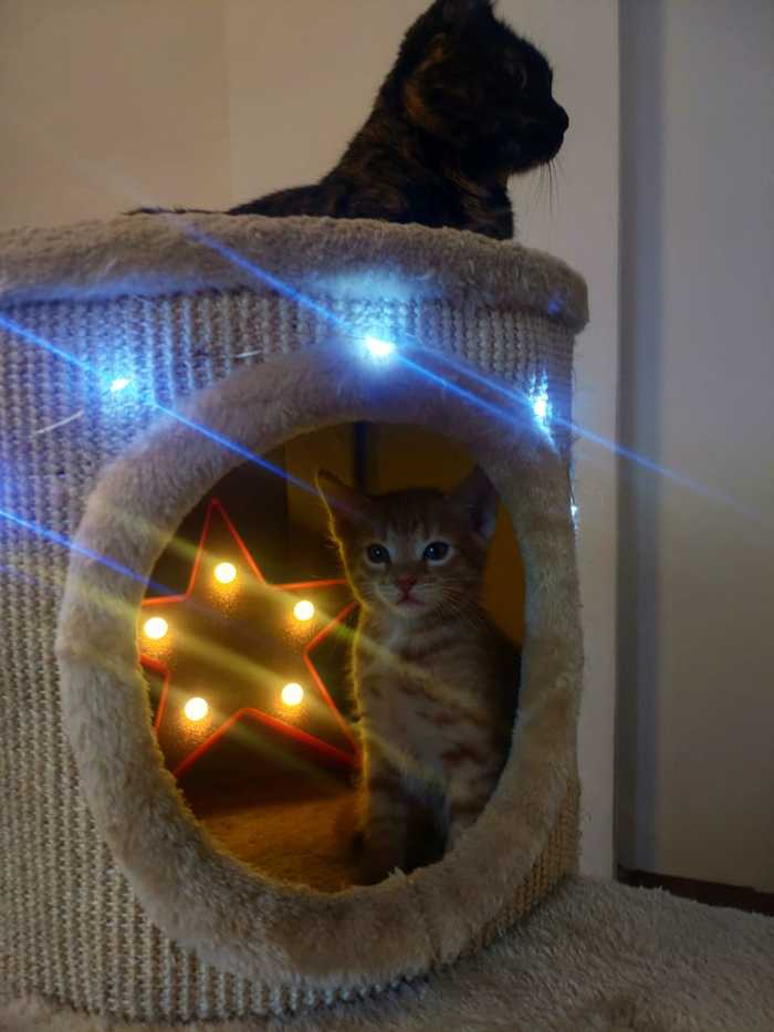 Ну, что ещё сказать. Китти сидит дома, кормит котят. Скоро поедет на стерилизацию. Марбл в полном восторге от брата и сестры и следит за ними как мама-утка, не отходит. Котята начали есть "взрослую" еду, чем ввергли в полный шок остальную часть кошачьего населения. Они, вроде как, не думали, что с этими ребятами придется делиться едой. К лотку я их приучила. В одном месте у каждого по мотору, носятся как тараканы по "своей" комнате. Но выглядят гордо.