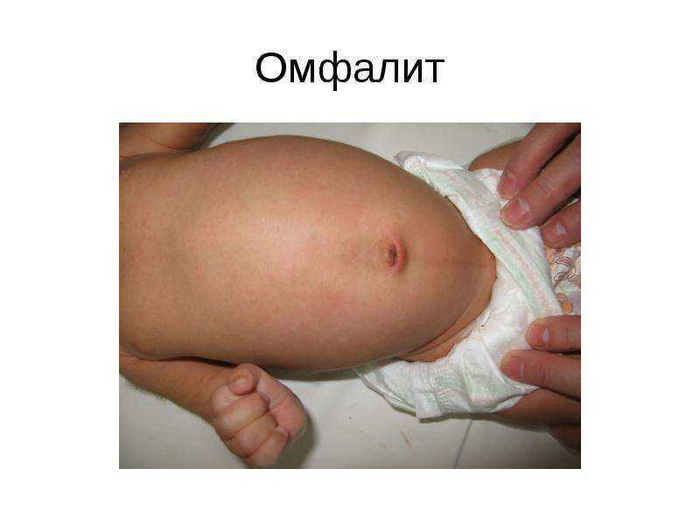 Нормальных фоток я не нашел, звиняйте) Проявляется покраснением вокруг пупка и выделениями из него, мокнутием пупка. Особенно част у детей первого месяца жизни. Дальше пупочная ранка уже окончательно зарастает. Штука весьма опасная - может закончится флегмоной, тромбозом печеночных вен, сепсисом, перитонитом. Поэтому важно вовремя заметить и обратиться ко врачу. Второе что может быть с пупком - это незаращение желточного протока или урахуса. Эти так сказать коммуникации были нужны плоду, но снаружи маминой писи они уже не канают) Их незаращение проявляются либо просто невоспалительным мокнутием пупка, либо выделением из пупка фекалий - когда образуется свищ между толстой кишкой и кожей. Штука тоже не полезная, лечится хирургически. И третье, самое опасное и самое труднозамечаемое - это когда еще недавно пупок был розовым, здоровым, а сейчас вы вдруг заметили, что на его дне появилось какое- то черное или красное пятно. А именно кровь. Это может быть проявлением такого опасного состояния, как геморрагическая болезнь новорожденных. У ребенка очень часто есть врожденный недостаток витамина К, отсюда хреновая свертываемость крови. Сейчас абсолютно всем детям сразу после рождения делают инъекцию с витамином К, во избежание этого потенциально смертельного аттракциона. А то потом бумаг столько заполнять, ужас... Но если и в будущем ребенок получает мало витамина К с пищей... Короче следите за пупком, ребята.
