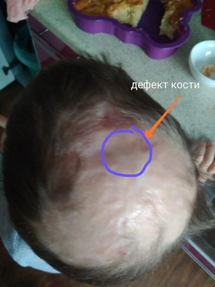 Даниил родился 01.07.2015 г. с открытой раной на голове (фото прилагаются). Эта рана заживала примерно год-полтора. Сейчас Дане 4.5 года и у него отсутствуют волосы на макушке и наблюдается дефект кости размером примерно с пятирублевую монету (отсутствует костная ткань).