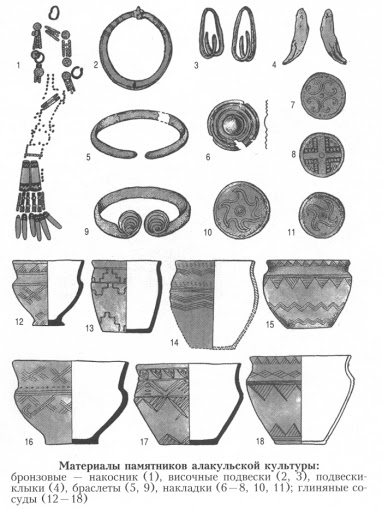 Средняя и поздняя или "Андроновская" бронза (XVIII - XI вв. до н.э.). Представлена четырьмя культурами - Алакульская, Федоровская, Черкаскульская и Пахомовская.