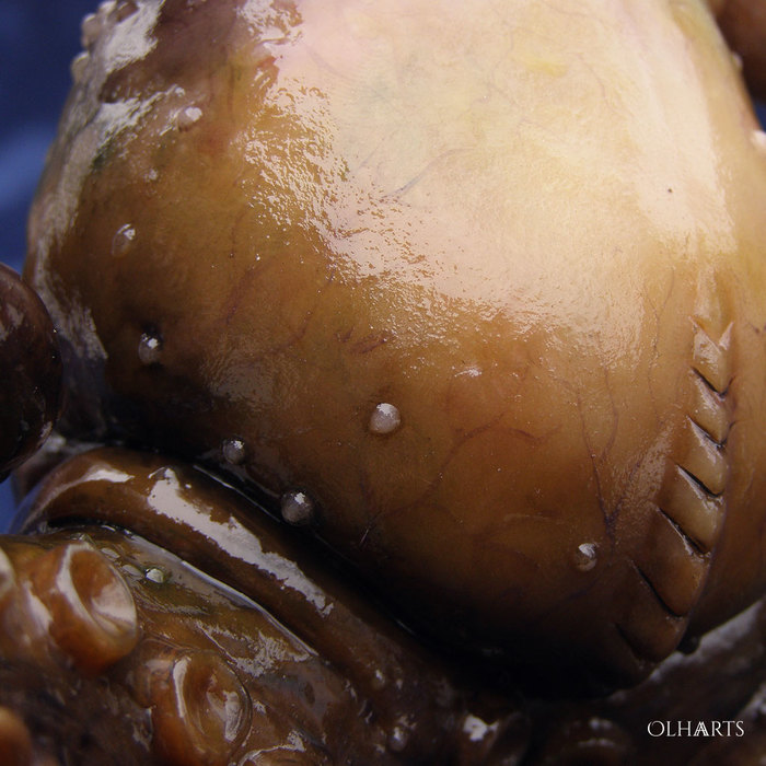 После финального запекания настало время покраски, я тут экспериметировала с маслом — мне дико нравится, как оно тонирует тушку с мягкими переходами цвета. Минус один — адски долго сохнет. Поверх уже подсохшего масла нарисовала акрилом вены. Вообще это надо было делать ДО этапа масла, но я забыль.