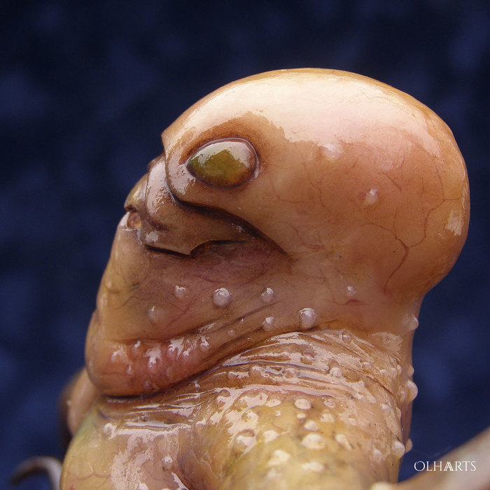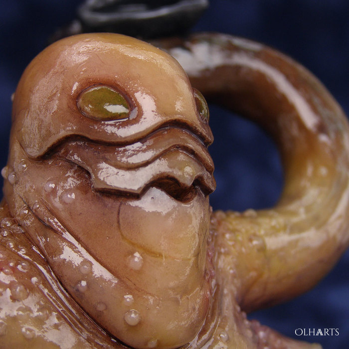 На фото ниже передние щупальца уже полностью проработаны, а заднее состоит только из базового запеченного слоя полимерки поверх фольги.