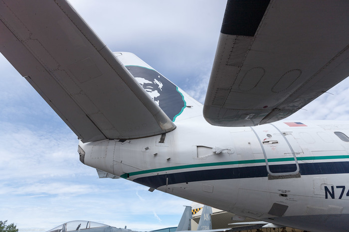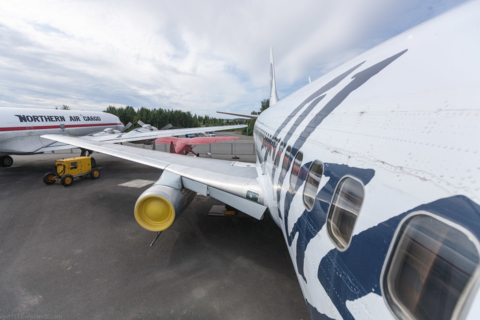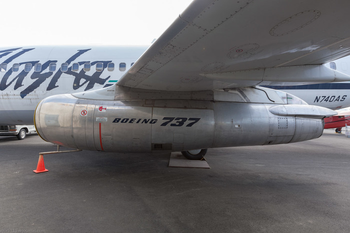 Далее фото Boeing 737-200.Модификации -100 и -200 узнаваемы благодаря сигарообразной гондоле двигателя, почти полностью встроенной в крыло от его передней до задней кромки. На первых моделях Boeing 737 использовались двигатели Pratt and Whitney JT8D с малой степенью двухконтурности. Также эти модели легко узнать по плавному изгибу верхней кромки киля.