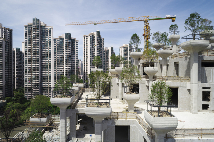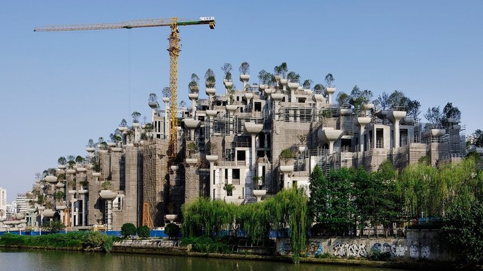 Строящийся торговый центр в Шанхае - 1000 Trees. Центр построен по проекту британца Томаса Хезервика, внешне напоминает легендарные Висячие сады. Сооружение находится в старой части города на берегу реки Сучжоу.