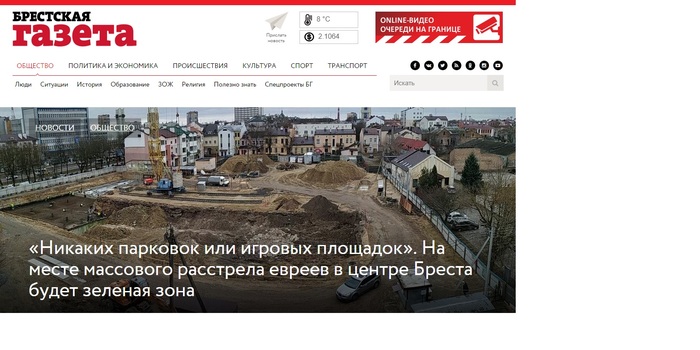 Напомним, на стройплощадке элитного квартала, ограниченного улицами Советской, Дзержинского, Куйбышева и проспектом Машерова, было найдено массовое захоронение времен Великой Отечественной войны. На месте строительства жилого комплекса в годы войны находилось гетто, здесь проходили и расстрелы евреев.