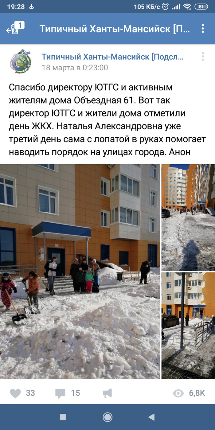 В Ханты-Мансийске 15 марта пришла нежданно не гаданно зима, а точнее намело очень много снега. Как обычно наши коммунальные службы, ДЭП и управляющие компании не были готовы к зиме... В Сибири... Уже весной.