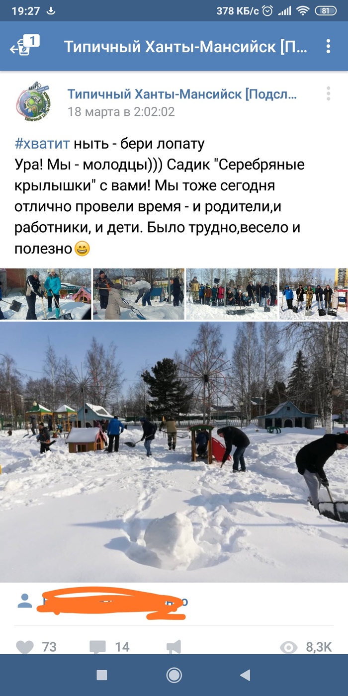 И знаете, что придумали? Они организовали флэшмоб "хватает ныть бери лопату" и заставили бюджетников чистить снег. Женщины, дети и старики чистили школы и детские сады.