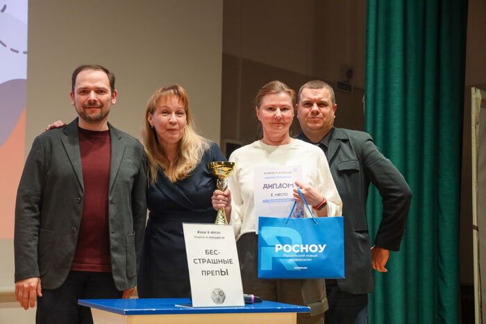 Кульминацией турнирной истории РосНОУ стала игра преподавателей против студентов. Начало было положено бесстрашной заведующей кафедрой рекламы и связей с общественностью Еленой Юрьевной Чилингир и доцентом кафедры философии Светланой Евгеньевной Воробьёвой. В апреле прошлого года прошли соревнования в составе 6 команд студентов и одной – преподавательской. Сначала учащиеся состязались между собой, а в финале самый сильный коллектив сыграл с преподавателями: счет сложился в пользу последних.