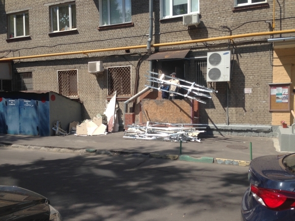 Въехали мы в салон красоты. Не сказать что ремонт был свежим, но вполне качественным. На первый взгляд рассчитывал своими силами разобрать пару перегородок из ГКЛ, очистить пару стен из того же ГКЛ и разобрать потолок армстронг - за выходные. Но глянул расценки за услуги разнорабочих, прикинул что нанять бригаду за 3-5 тыс не сильно ударит по бюджету. В целом так все и вышло. Ранним субботним утром пришло 4 человека, показал фронт работы - и началось. В ход пошла тяжелая артиллерия, кувалды и прочее. Осложнялось еще тем, что нам сдали 1/2 помещения, а во второй части остался салон красоты - и задача номер 1 была -не убить строительным мусором чужое помещение. Вторым ограничением было то, что находится это помещение в жилом доме, и крушить в выходной день - было бы кощунством по отношению к соседям. Поэтому кувалды отложили, начали разбирать откручивая саморезы. Скорость сильно упала, но удалось относительно чисто и без шума очистить стены.