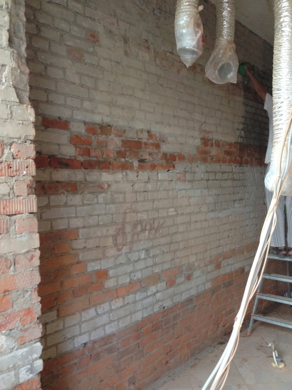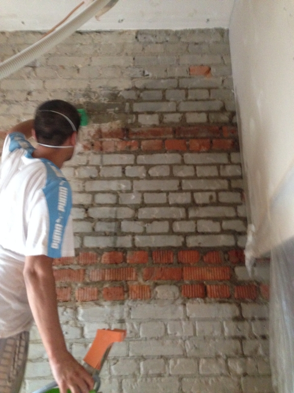 Следующим этапом было очистить кирпичные стены от цемента, что бы в последствии покрыть лаком. Этот этап был самым коварным. Итогом было чуть ли не концом всей истории.