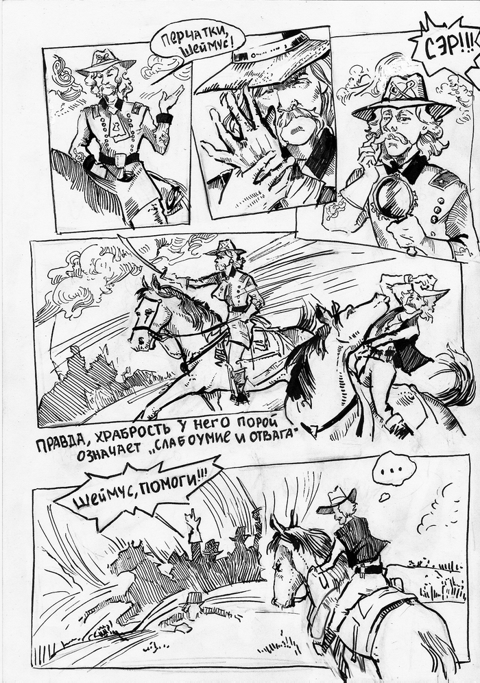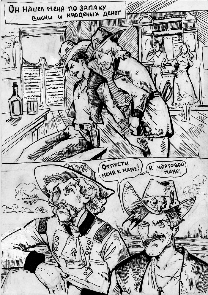 Экспериментальные страницы комикса, над которым решила вдруг начать работать. Надеюсь, выльется во что-то большее дальше, потому что увлекло сильно))) Вестерны, Лавкрафт, Гражданская война в США - все, что я люблю.