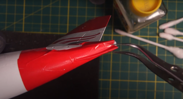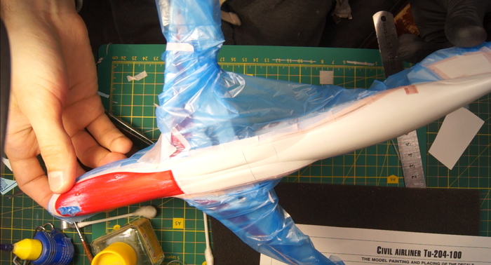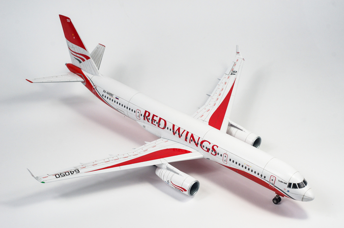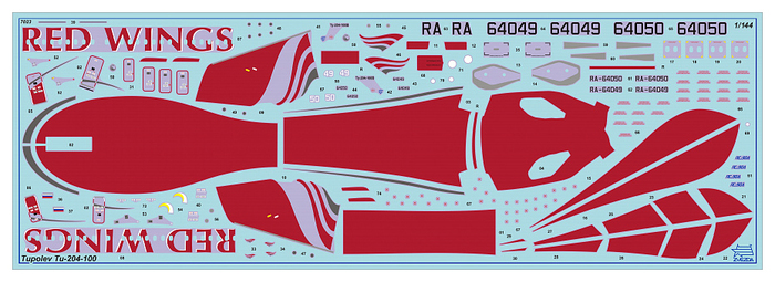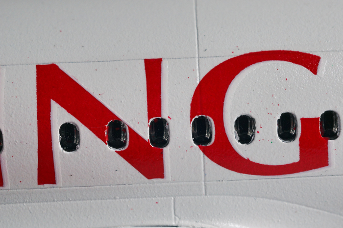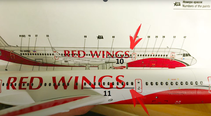Первый сюрприз выскочил при нанесении боковой надписи "RED WINGS". В инструкции от символа "I" до входного люка 10 иллюминаторов, в самолёте же 11. Мистика.