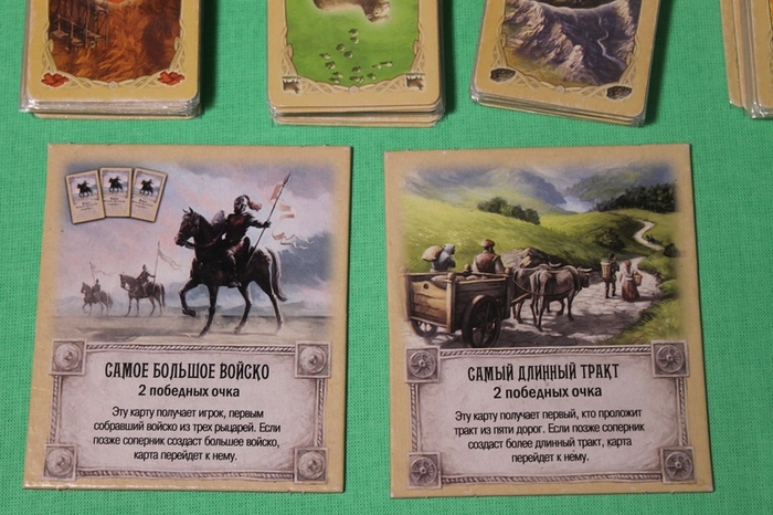 А вот дороги и остальные карты развития очков напрямую не приносят, но могут принести достижения «Самый длинный тракт» или «Самое большое войско», каждое из которых даст еще 2 очка.