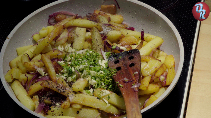 А жареная картошка с луком, на сале, да ещё с чесночком и с укропом это просто божественное наслаждение!