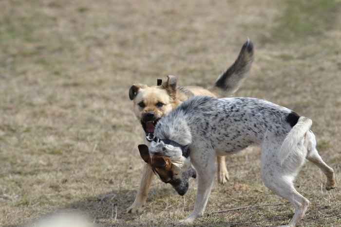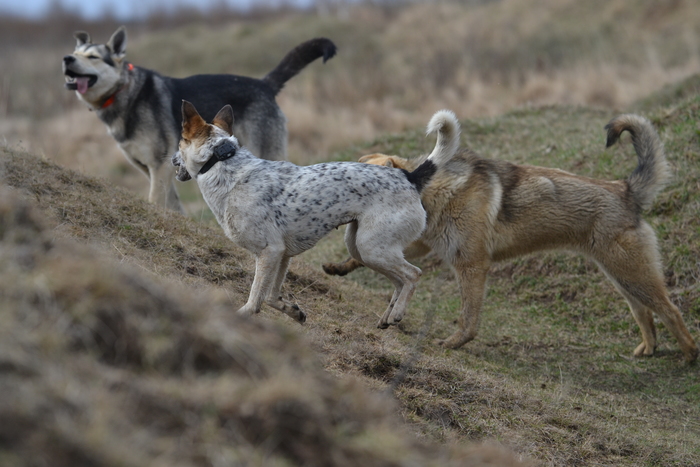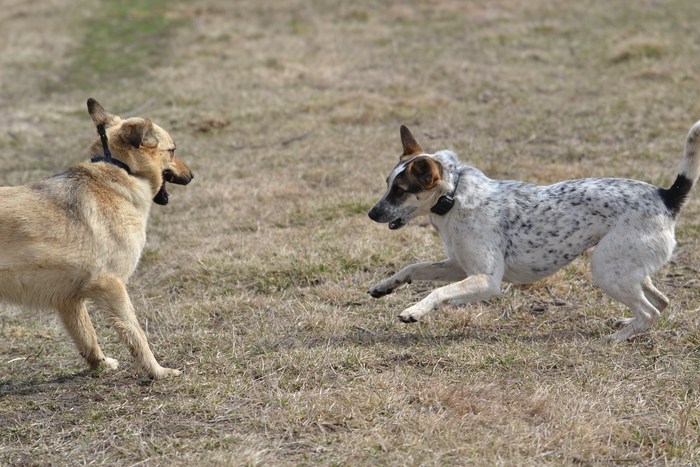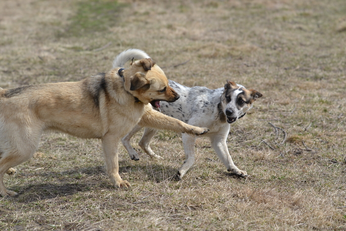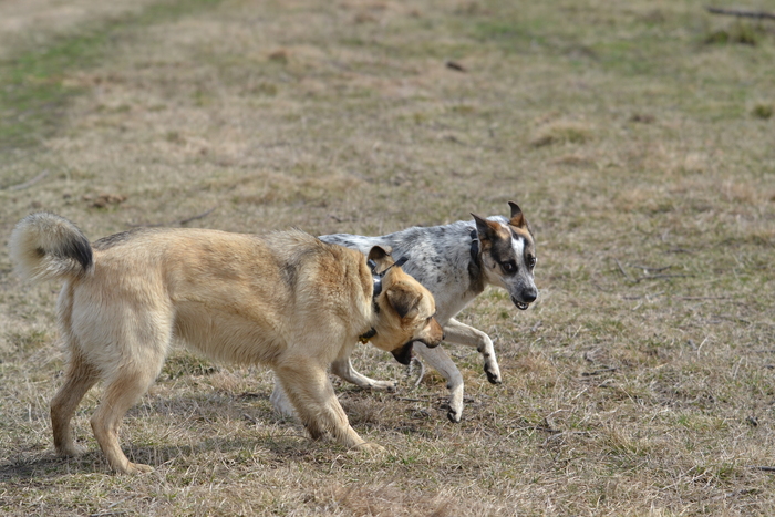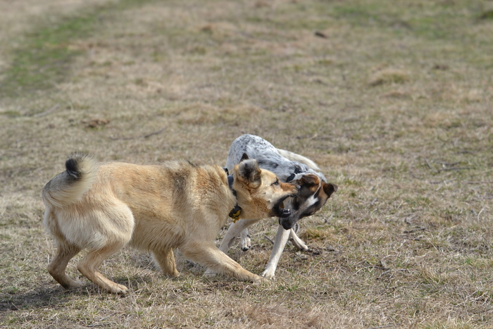 С другими собаками у Катюши по началу тоже не всё ладилось. Катя не умела играть. Она умела нападать, кусать, уворачиваться от зубов. А просто играть, не нанося травм, не умела. Из-за этого с ней или огрызались, или отказывались играть.