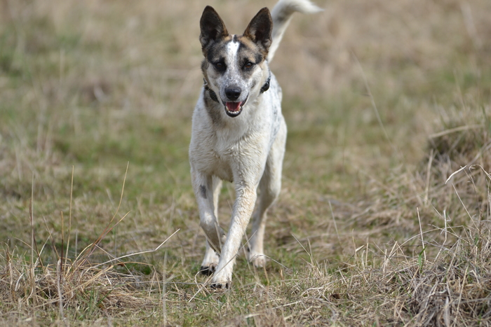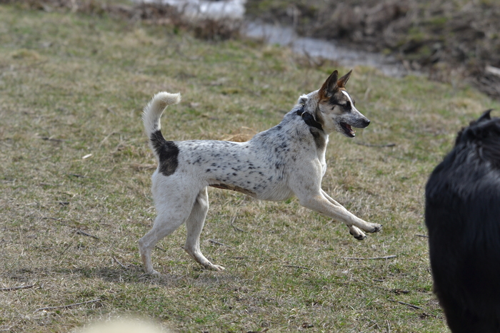 Катюша обожает носиться за птичками, за любыми. Будь то сорока или скворец. Всё едино. Главное, чтобы летела. Желательно, пониже к земле. Я думаю, ласточкам новая подружка придётся по вкусу. Ласточки любят играть с собаками.