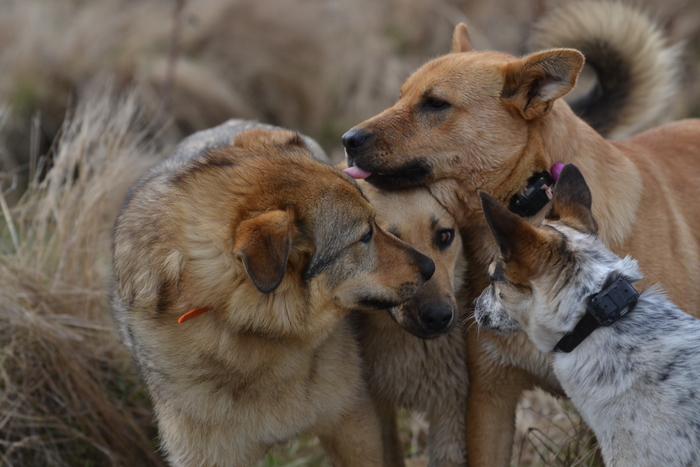 Со мной она по-прежнему добрая, ласковая и послушная. Но совершенно меняется, когда оказывается в стае. Несмотря на свой маленький размер, Катюша никому не уступает.