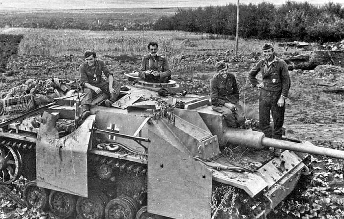 Штурмовые орудия были едва ли не самым распространенным видом гусеничной бронетехники в Вермахте. На фото видно, что щиты могли присутствовать не в полном количестве — можно стрелять по 30 мм борту
