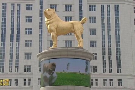 Президент Туркмении Гурбангулы Бердымухамедов открыл в столице страны, Ашхабаде, золотой памятник алабаю. Вообще, как сообщает государственное информагентство «Туркменистан сегодня», Бердымухамедов открывал целый комплекс новостроек — но дома явно меркнут в сравнении с монументом.