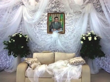 В Туркмении молодоженов, регистрирующих брак в местных ЗАГСах, обязали фотографироваться на фоне портрета президента страны Гурбангулы Бердымухамедова. Об этом пишет «Хроника Туркменистана».