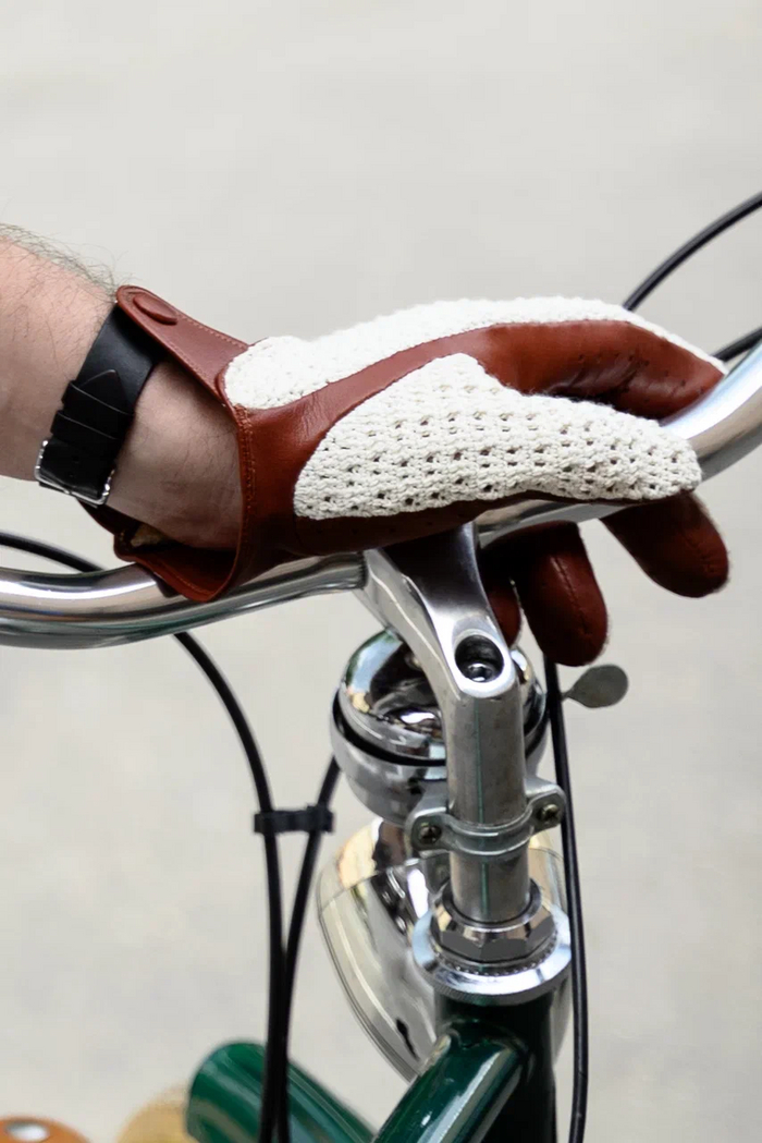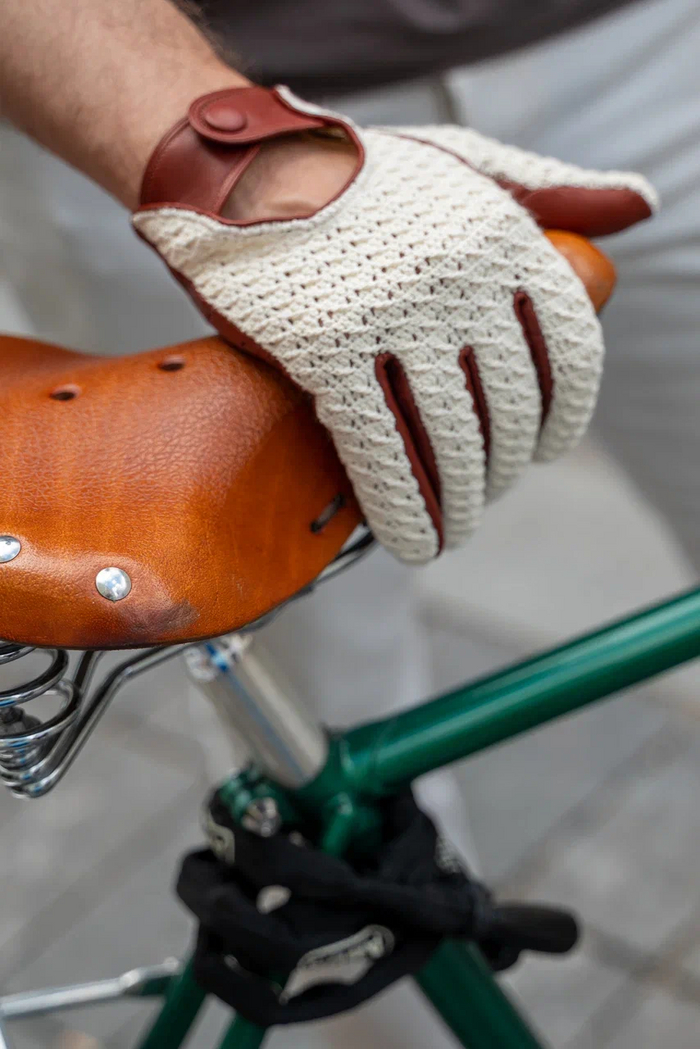 Перчатки ручной работы из итальянской кожи. Верх пары связан из натуральной пряжи, крючком.