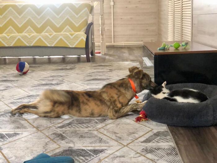 Мальчик оказался потрясающе ласковым, нежным и любвеобильным! Если бы вы знали, как он любит кошек, он готов с ними спать в обнимку, только бы кошка разрешила!