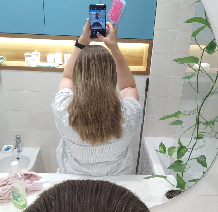 В четверг беру телефон и вижу вот это "детище" на моей голове! Божеееееее! 😂 Я не могла успокоиться, у меня случилась настоящая истерика 😂 🤦🏻♀️ в последний раз меня так стригли в 2002 году за 200 рублей в забегаловке возле учебного корпуса 😂😂😂 мне было 16 лет 😂