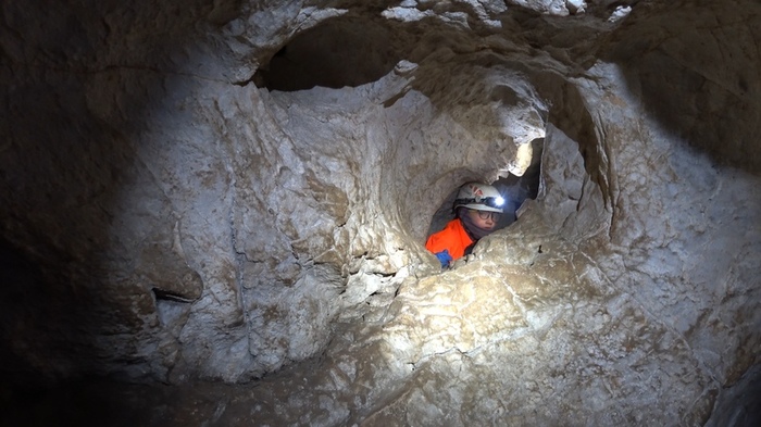 На следующий день мы с Пашей решили продолжить попытки пробиться в новую часть в пещере Мрака, но время нам не позволило это осуществить. Новый грот уже хорошо виден, но дух пещеры пока не согласился нам его отдать.