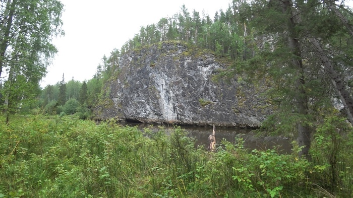 Через час подъехали Сергей и Максим на грозном УАЗе и мы выдвинулись в сторону пещеры Сокола. Побуксовав по лесным дорогам, подъехали к реке. Природа красивейшая - серые скалы, тайга, журчание Каквы.