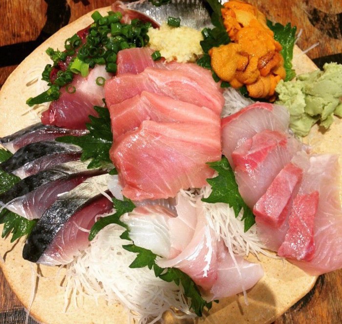 Советую заранее погуглить местные интересные ресторанчики. Мы посетили один из самых старых ресторанчиков с сашими в Синдзюку. Ресторан был полностью забит внутри и на улице, но для нас нашли пару лишних стульев.
