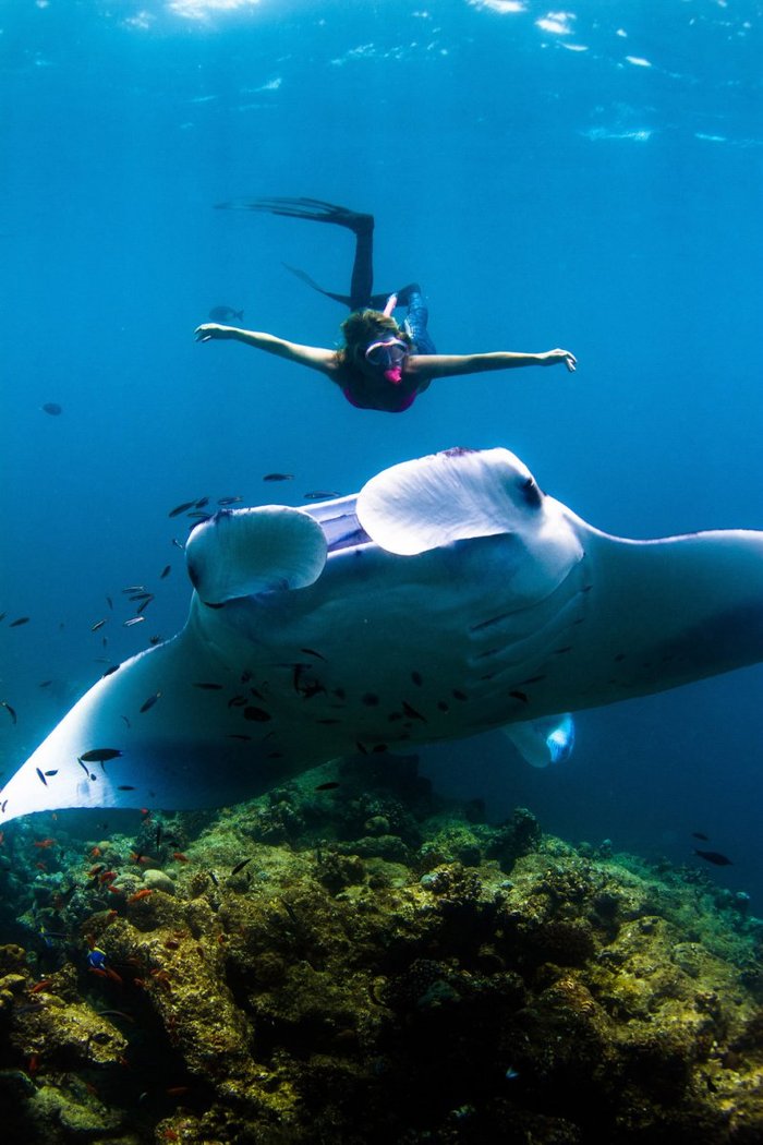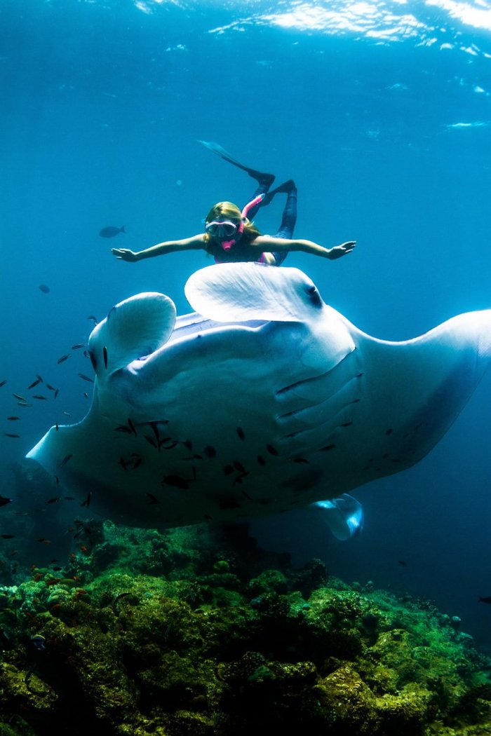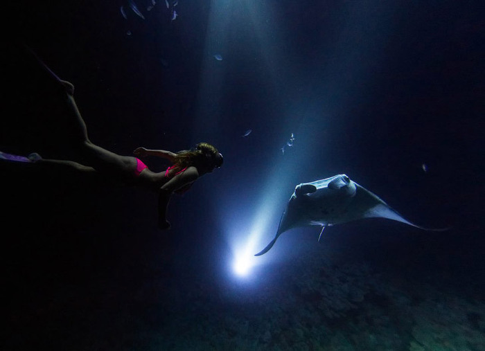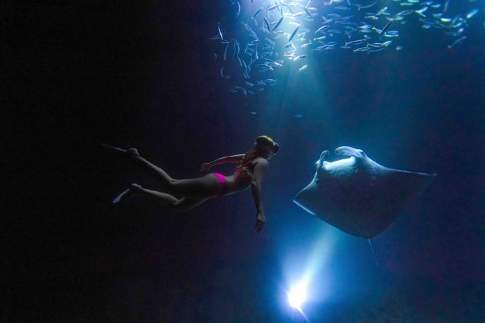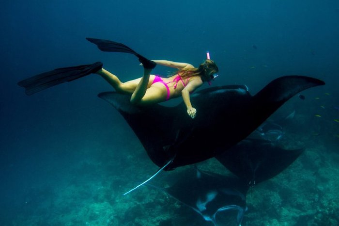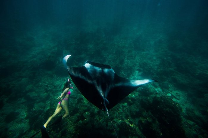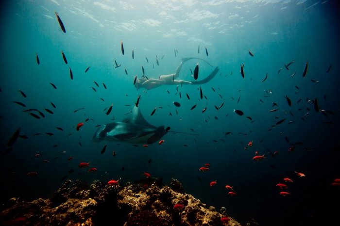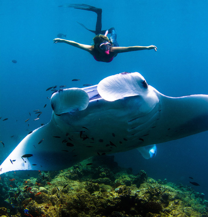 Морской дьявол или скат манта - один из самых крупных видов скатов. Этот гигант был замечен рядом с одним из рифовых островов, и по предположением он может весить около 3 тонн.