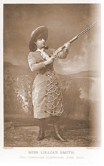 Лиллиан Смит действительно прекрасно стреляла. Именно этот талант позволил ей участвовать в знаменитом шоу Буффало Билла, начиная с 1886 года. Лиллиан прекрасно попадала с стеклянные шары, расположенные на движущихся лошадях, демонстрировала чудеса меткости, прыгая сама. Но, спустя некоторое время, в шоу появилась соперница. Энни Оукли стреляла ничуть не хуже Лиллиан, и они не взлюбили друг друга. В конце концов, после многочисленных ссор Лиллиан потребовала Буффало Билла выбирать, т. е. в шоу должна была остаться только одна. Продолжила выступления Энни Оукли.