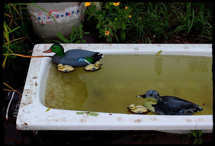 48 DeGlazastik Лига фотографов Дачные зарисовки. Осень. 8 лет назад У родителей на даче. 15 км. от Кемерово. Иногда там плавают караси. Дед внука веселит, с рыбалки придя живых выпускает. Цветовые контрасты. Показать полностью 3 [моё] Дача Утка Градусник Забор Длиннопост