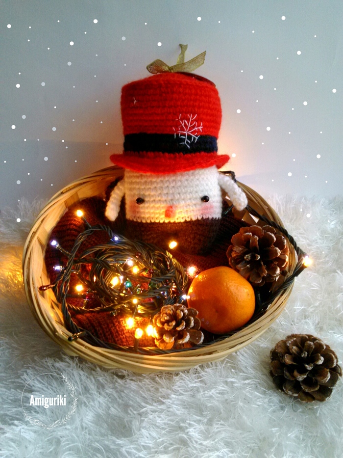 Снеговик Симон в шляпе,немного смахивающей на ковбойскую (так как бортики у нее заворачиваются)