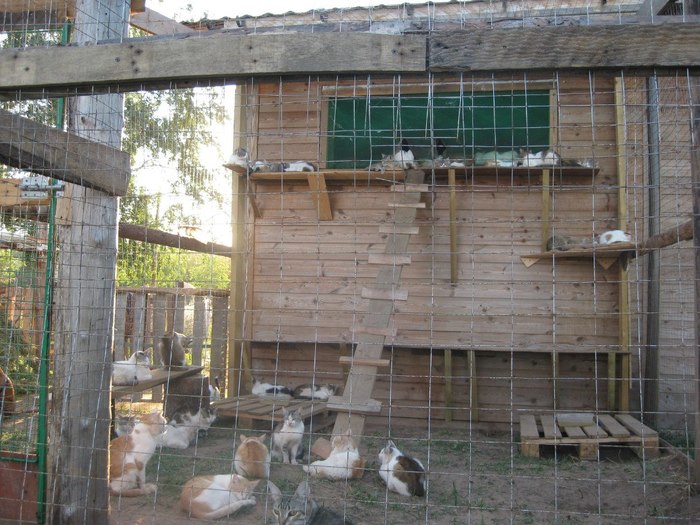 Этот приют находится в хорошем состоянии, но есть еще одни так у них все совсем туго, там одни собачки и куча проблем от недостатка средств для строительства бытовок до перенаселения. (называется он Егорка)