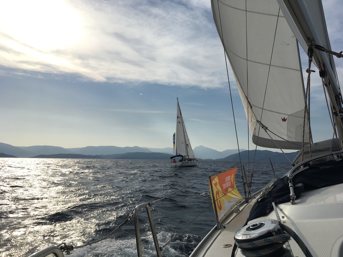 С утра - легкий завтрак из того что прикупили в ближайшем маркете, и ждем прихода кэпа с утреннего брифинга шкиперов, где выдают информацию по сегодняшним гонкам. Наконец-то он приходит, и выдает инфу