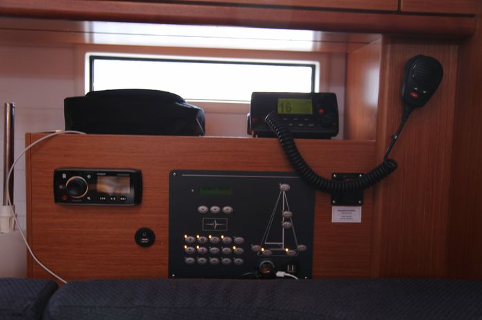 В кают компании у стола штурмана установлены: рация, трансляционная система и пульт управления оборудованием яхты. На нем включаются огни (навигационные, габаритные, топовый, моторный, якорный), питание брашпиля (якорная лебедка), системы навигации, сервомеханизмы, а также различные дополнительные устройства (туалет, помпа душа, бойлер, внутреннее освещение...).