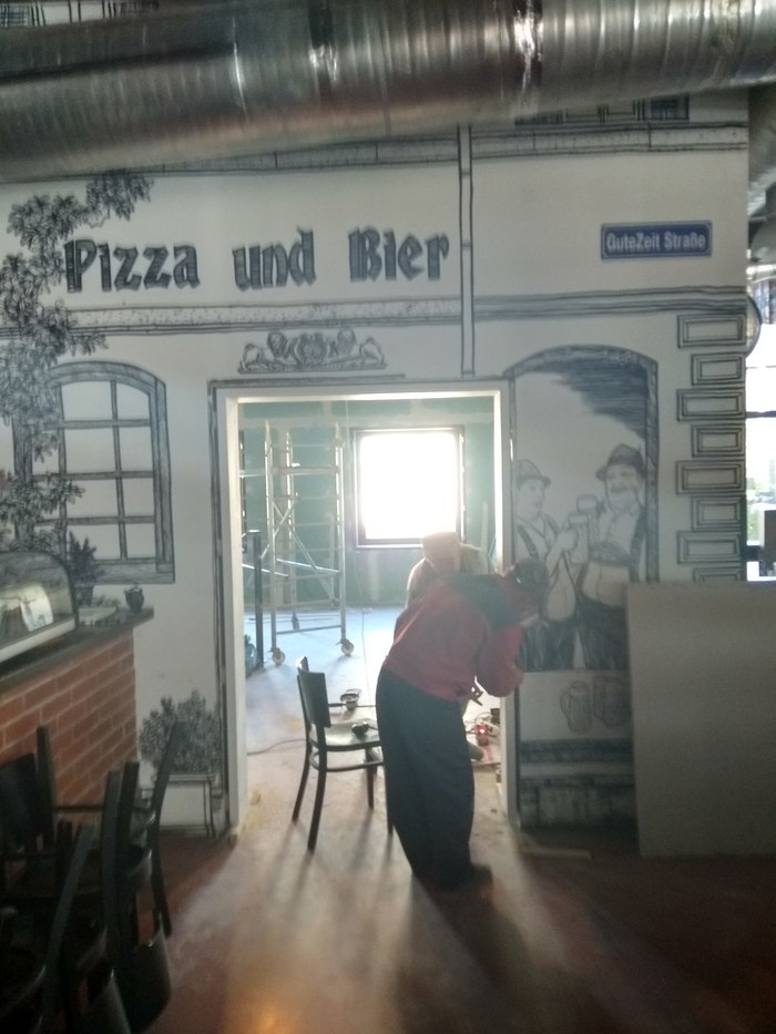 Штанга из него торчит непросто так, это профиль приварен к швеллеру потолка, к нему будет крепится проектор для видео 360 градусов.