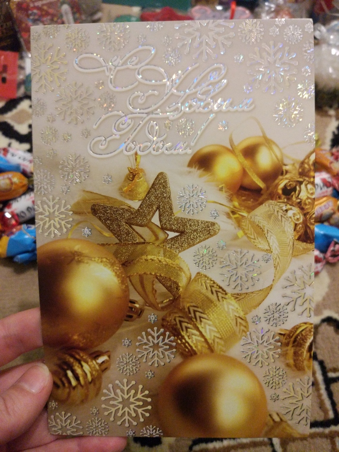 И самое главное - открытка с очень теплыми поздравлениями и пожеланиями, немножко всплакнула.