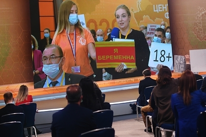 Путин решил уточнить, какое отношение к вопросу имеет ее беременность. Журналистка объяснила, что специально выбрала «яркую» табличку, чтобы ее, наконец, заметили. «Понятно, вы нас надули», — ответил президент.