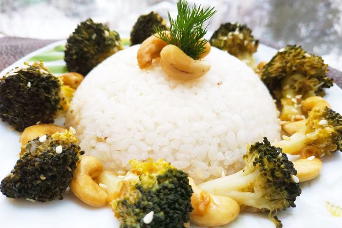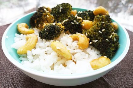 10. Подавайте зажарку из орехов кешью и брокколи с отварным рисом, посыпав сверху кунжутными семечками. Приятного аппетита!