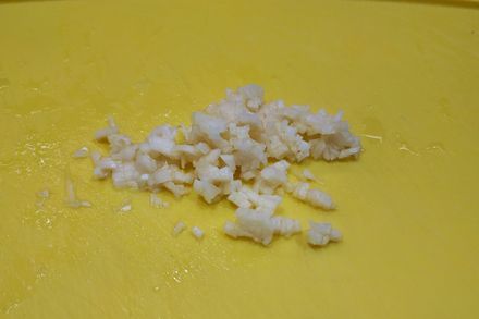 3. Подготовьте чеснок, отделите зубчики, очистите и мелко нарежьте ножом или выдавите их через пресс.
