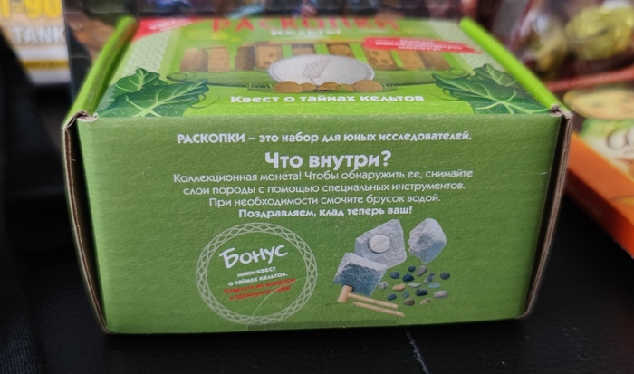 Далее - мини-квест по раскопкам кельтской монеты. Насколько я поняла, это кусочек известняка, из которого деревянными инструментами нужно аккуратно извлечь монетку. Любопытная штука, обязательно достану монетку :)