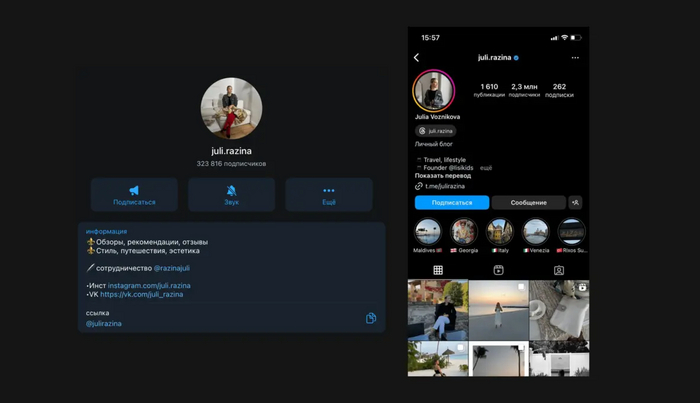 Знакомьтесь, Юлия, королева ботов в телеграм и инсте. Юлия аргументирует свой большой канал аудиторией, которую переливает с инсты, поэтому профиль в запрещенной сети, тоже был проанализирован.