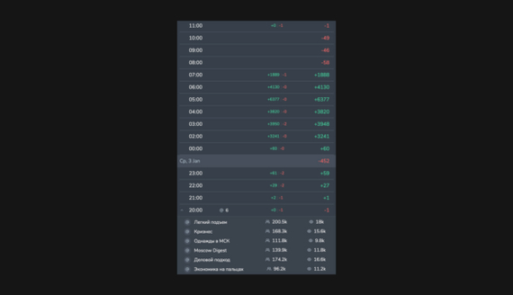 2. По странной активности в приросте и оттоке подписчиков. То есть за один день на канал подписалось 2-3 тысячи подписчиков всего за пару часов - это должно послужить звоночком. Или также за один день отписалось пару тысяч - это уже должно послужить гудочком.