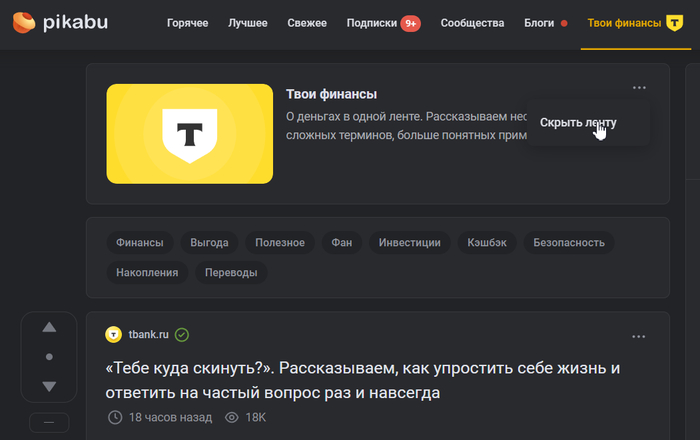 Эта лента будет регулярно пополняться новыми публикациями, поэтому следите за лентой – вы наверняка найдете в ней что-то полезное и для себя. Если же тема финансов вам неинтересна, ленту вы всегда можете убрать из шапки в настройках: