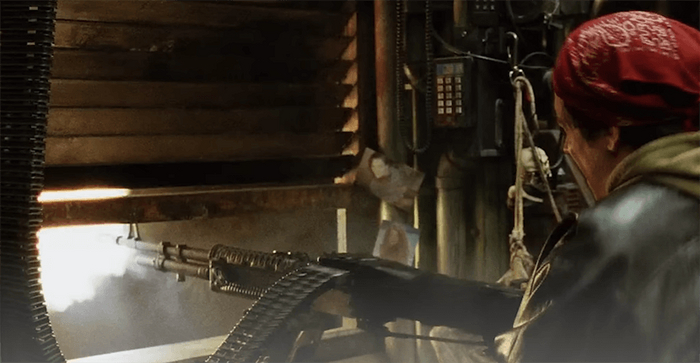 Для обороны в боковых амбразурах Мертвецкого патруля были установлены пулеметы, а в тяжело бронированной передней части автомобиля, совместившей в себе черты тарана и отвала, размещены миниганы – пулеметные турели, которыми управляет водитель фургона при помощи джойстиков.